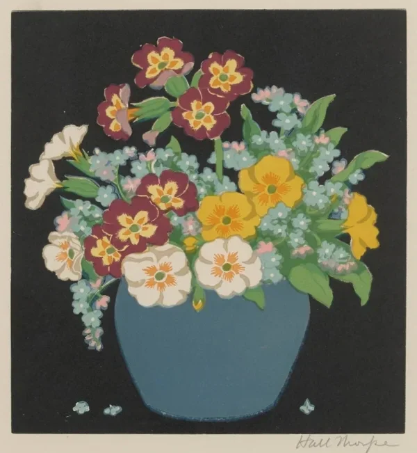 John Hall Thorpe (1874-1947 AUS/GB) Kleurenhoutsnede 'Vergeet-me-niet' 1922 Gesigneerd met potlood