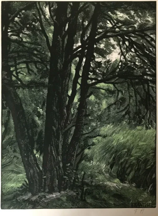 Franz Hein (1863-1927) Kleurenhoutsnede 'Els / Erle' ~1920 Gesigneerd met potlood