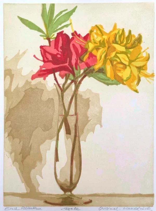 Ernst Rötteken (Germany 1882-1945) Kleurenhoutsnede 'Azalea' ~1930 Gesigneerd met potlood