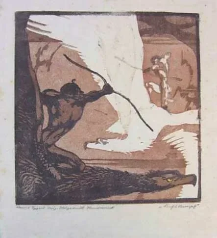 Kleurenhoutsnede 'Luftkampf' ~1914