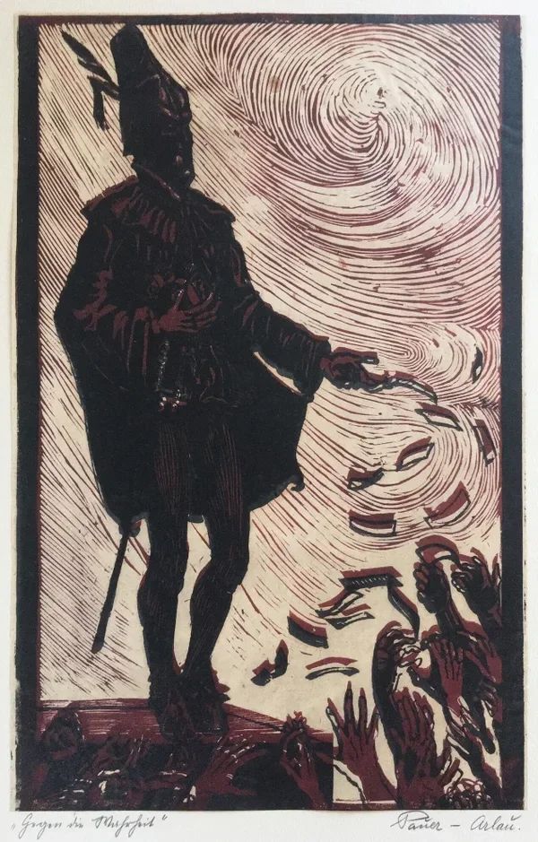 Carl Pauer-Arlau (Austria 1880-1953) Kleurenhoutsnede 'Maecenas' ~1925 Gesigneerd met potlood