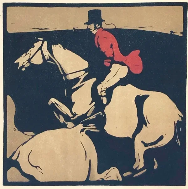 Sir William Nicholson (1872–1949 Great Brittain) Kleurenhoutsnede 'Racing' 1898