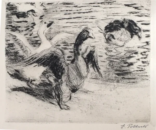 Emil Pottner (1872–1943 Austria) Ets 'Ganzen' ~1914 Gesigneerd met potlood