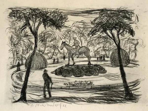 Franz Heckendorf (1888-1962) Ets 'Stadspark' 1922 Gesigneerd met potlood
