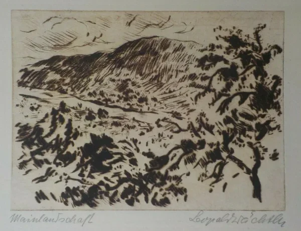 Leopold Wächtler (1896-1988 Germany) Ets (droge naald) ‘Landschap’ ~1919 Gesigneerd met potlood