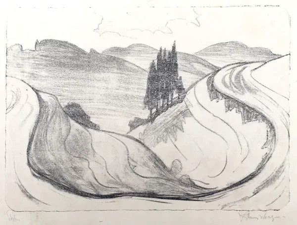Klaus Wrage (Germany 1891-1971) Lithografie 'Landschap met naaldbos' ~1920 Gesigneerd met potlood