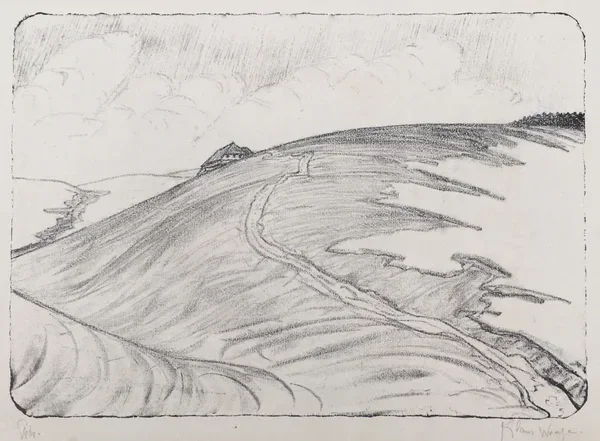 Klaus Wrage (Germany 1891-1971) Lithografie 'Landschap met huis' ~1920 Gesigneerd met potlood