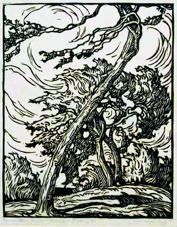 Houtsnede 'Baum im Wind' 1920