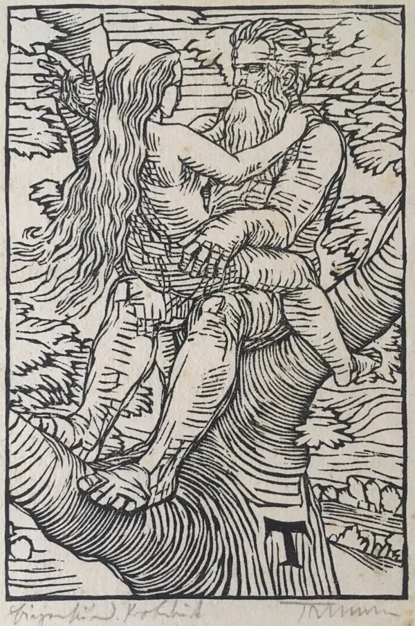 Peter Trumm (1888-1966) Houtsnede 'Weib und Man' ~1920 Gesigneerd met potlood