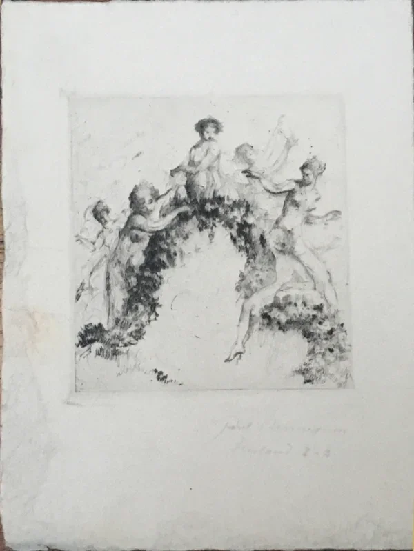Paul Herrmann (of Henri Héran) (1864–1940 Germany) Ets "Fantasie" ~1897 Gesigneerd met potlood