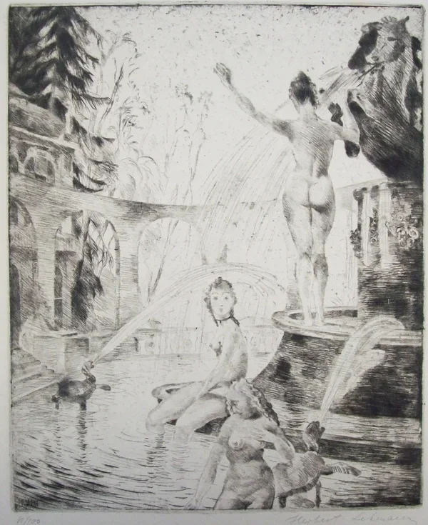 Herbert Lehmann (1890-1946) Ets (droge naald) 'Vrouwen bij fontein' ~1925 Gesigneerd met potlood