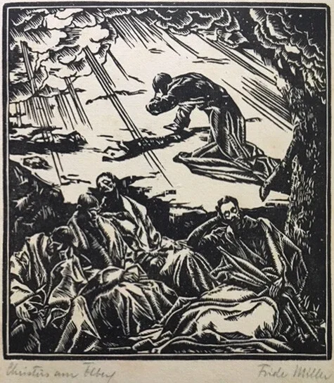 Fride Miller (1893 - 1962) Houtsnede 'Chistis am Ölberg' ~1920 Gesigneerd met potlood