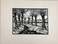 Fritz Teuchert (1909-1941) Linosnede 'Knotwilgen’ ~1935 Gesigneerd met potlood