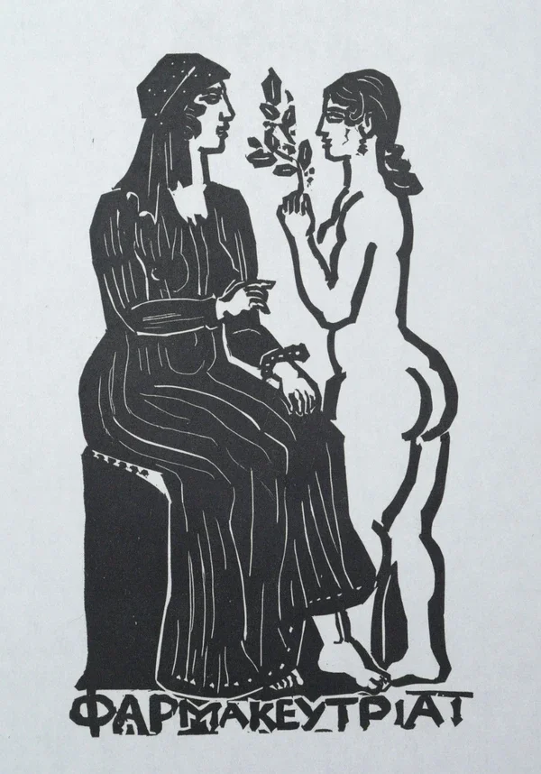 Gustav Heinrich Wolff (1886-1934 Germany) Houtsnede 'Odysseus & Circe' 1923