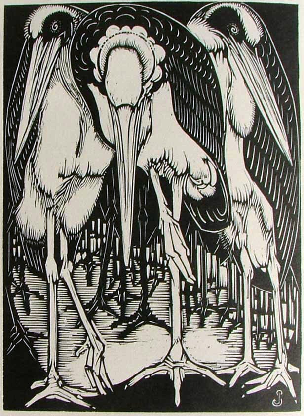Jan Schonk (1889-1976) Houtsnede 'Maraboes' 1928